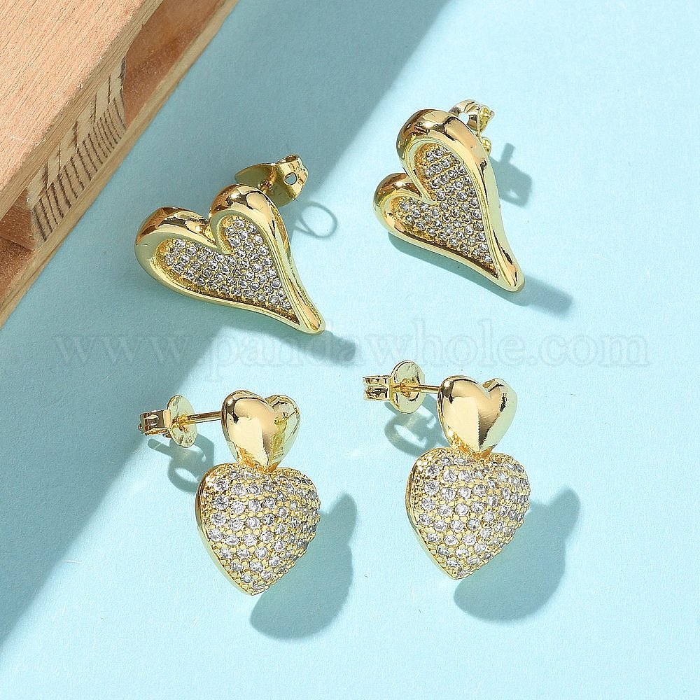 Женские серьги-гвоздики из латуни с микропаве и прозрачным кубическим цирконием, сердце