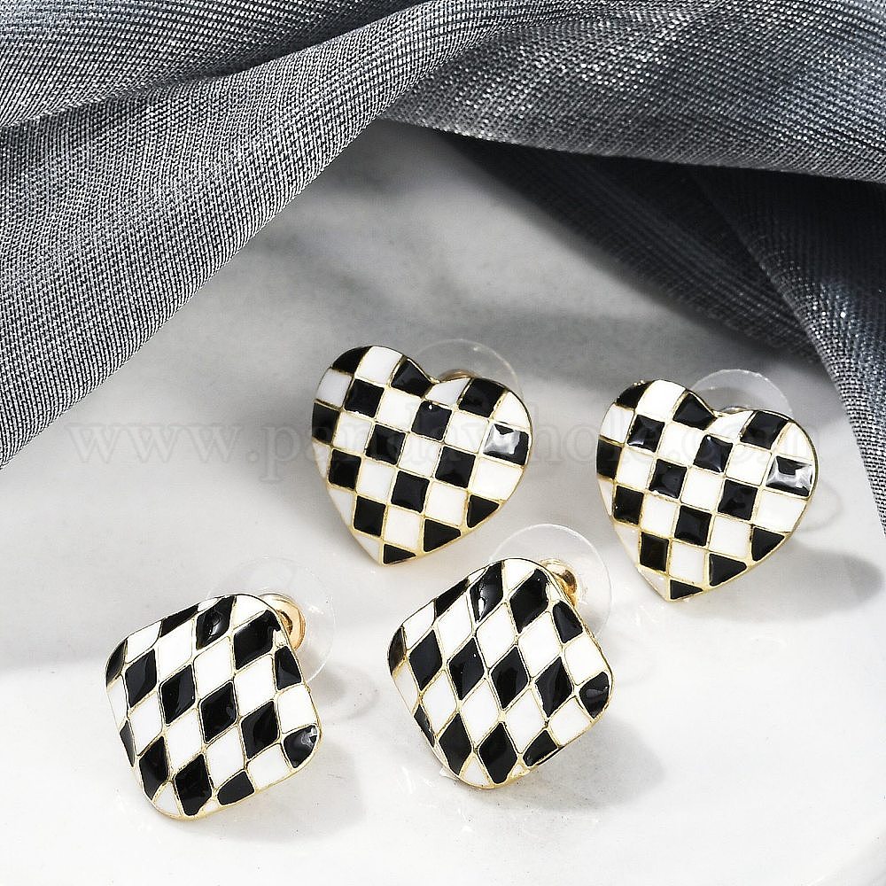 Серьги сплава, черно-белая шахматная доска, золотые