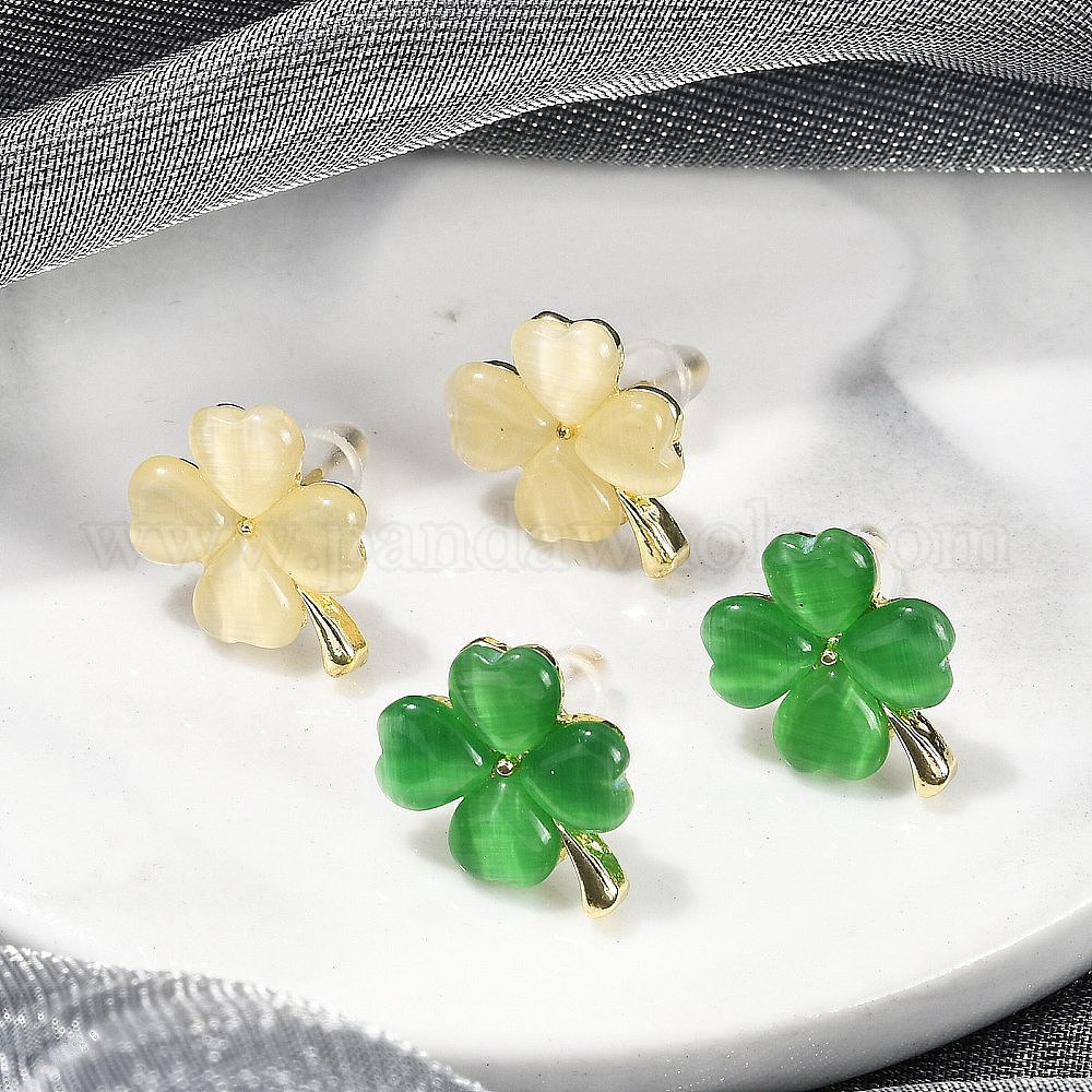 Литые глаза кота серьги, клевер