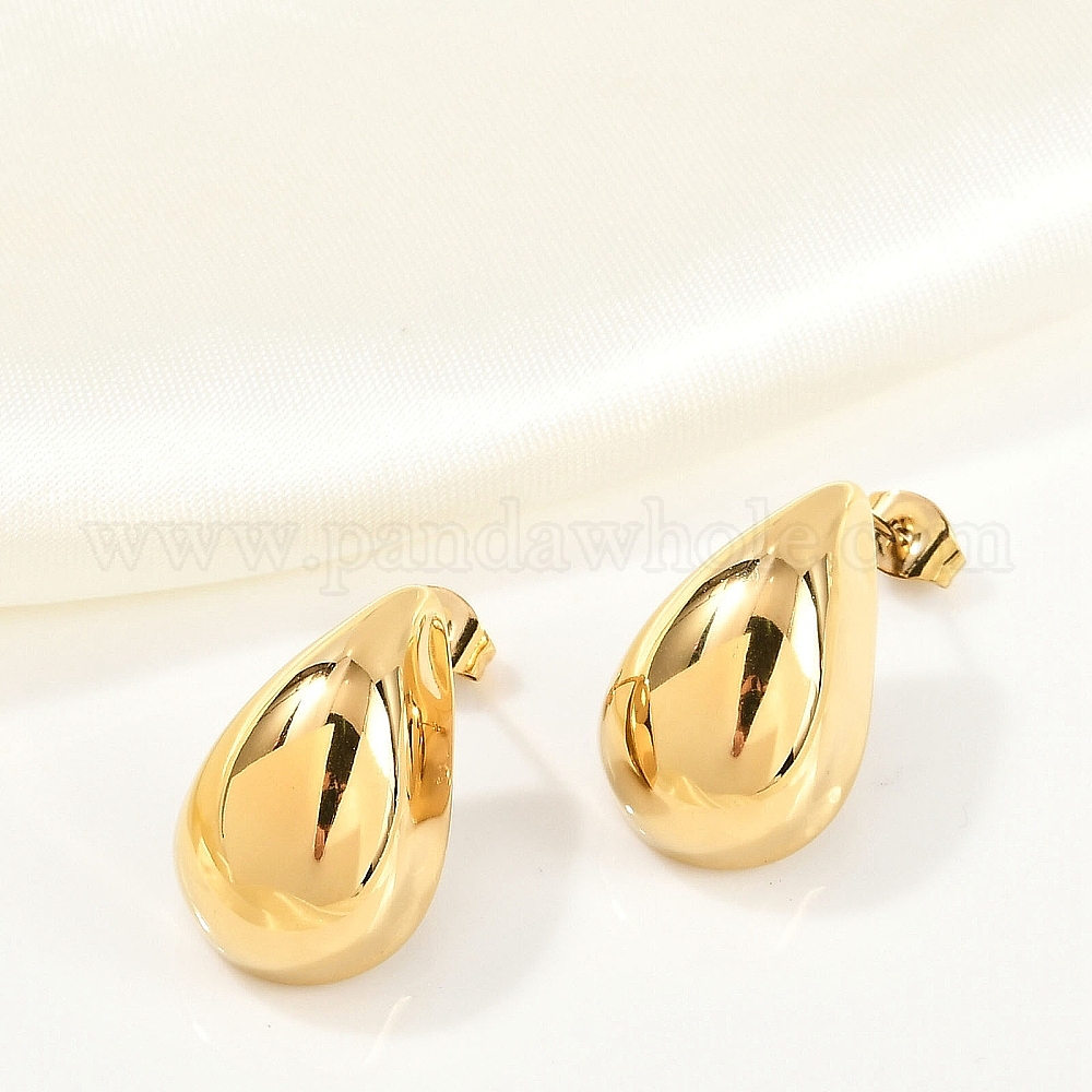 • Настоящее золото 18K 304 серьги-гвоздики-капли из нержавеющей стали, реальный 18 k позолоченный, 20.5 мм, штифты : 0.6 мм