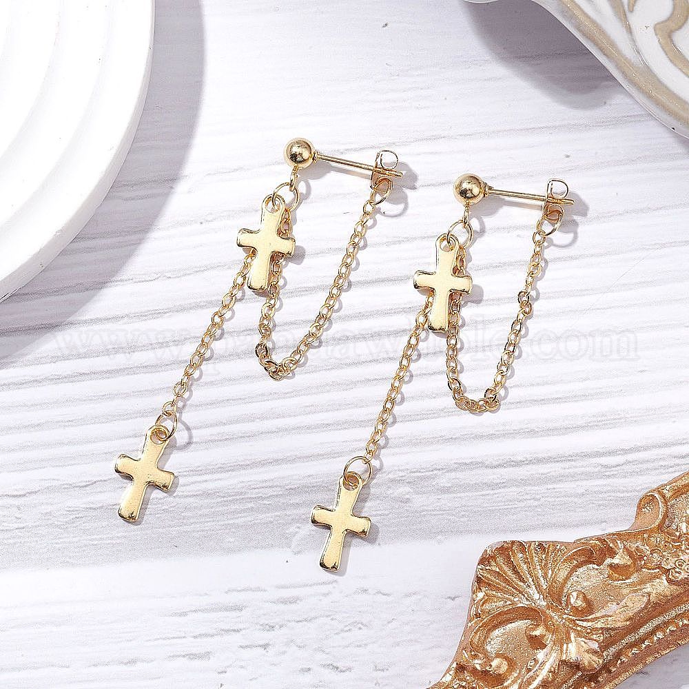 Длинные висячие серьги-гвоздики из латунных цепочек для женщин, 304 из нержавеющей стали крест подвески