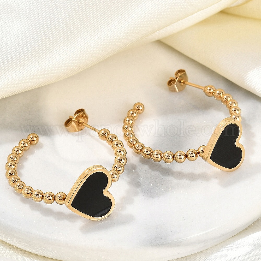 Вакуумное напыление PVD вакуумное напыление 304 серьги-гвоздики в форме сердца из нержавеющей стали, с эмалью