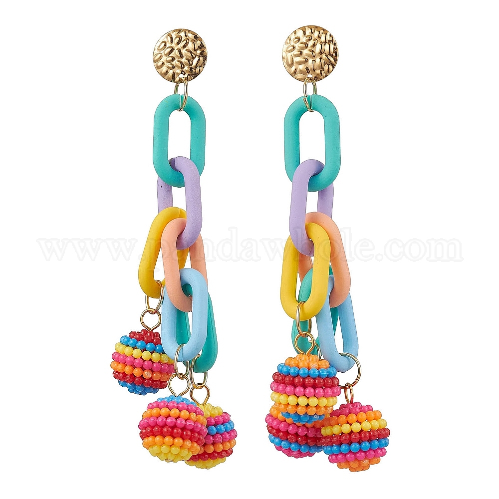 Акриловые болтаться серьги стержня, с бусинами из АБС-пластика и 304 фурнитурой из нержавеющей стали, круглые