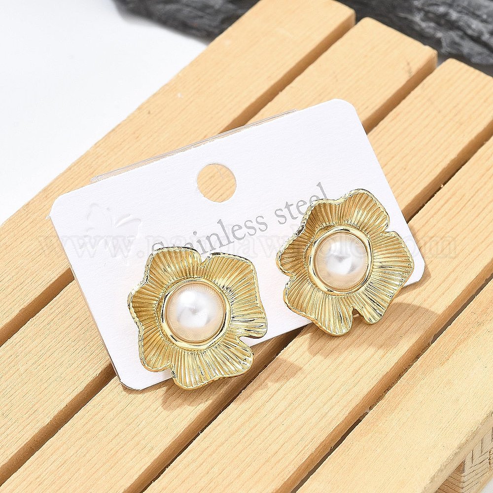 Ионное покрытие (ip) 304 серьги-гвоздики из нержавеющей стали, с искусственным жемчугом из платины для женщин, цветок