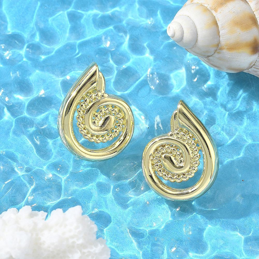• Золотой Латунные серьги-гвоздики в форме раковины для женщин, золотые, 24.5x19 мм