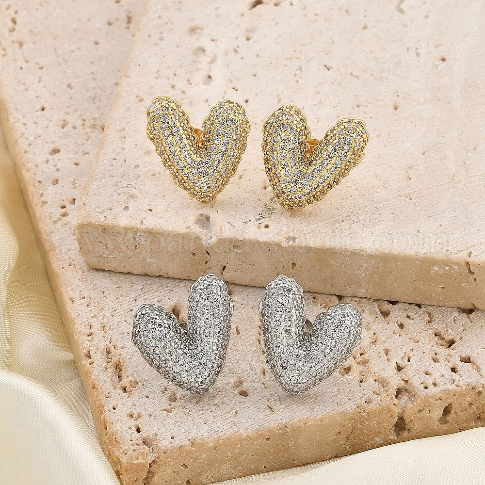 Женские серьги-гвоздики из латуни с микропаве и прозрачным кубическим цирконием, сердце