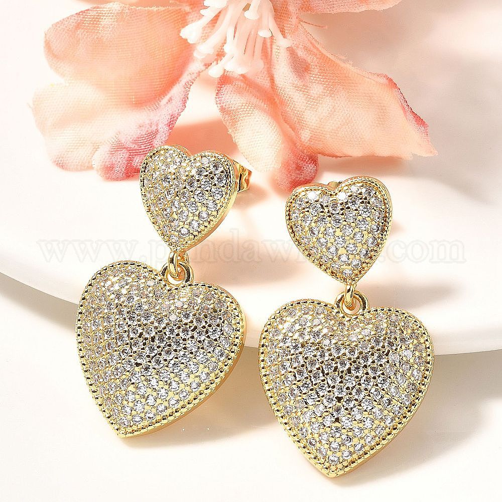 Серьги-гвоздики из латуни с микро-паве из прозрачного кубического циркония для женщин, без кадмия и без свинца, долговечный, сердце