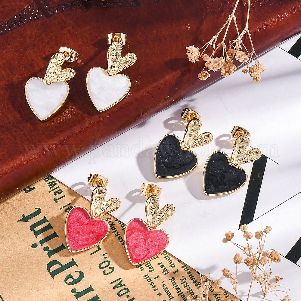 Серьги-гвоздики из латуни в форме сердца с покрытием для женщин, с эмалью, без кадмия и без свинца, долговечный, реальный 18 k позолоченный