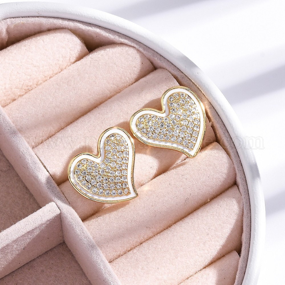 Серьги-гвоздики из латуни с микро-паве из прозрачного кубического циркония для женщин, с эмалью, без кадмия и без свинца, долговечный, сердце