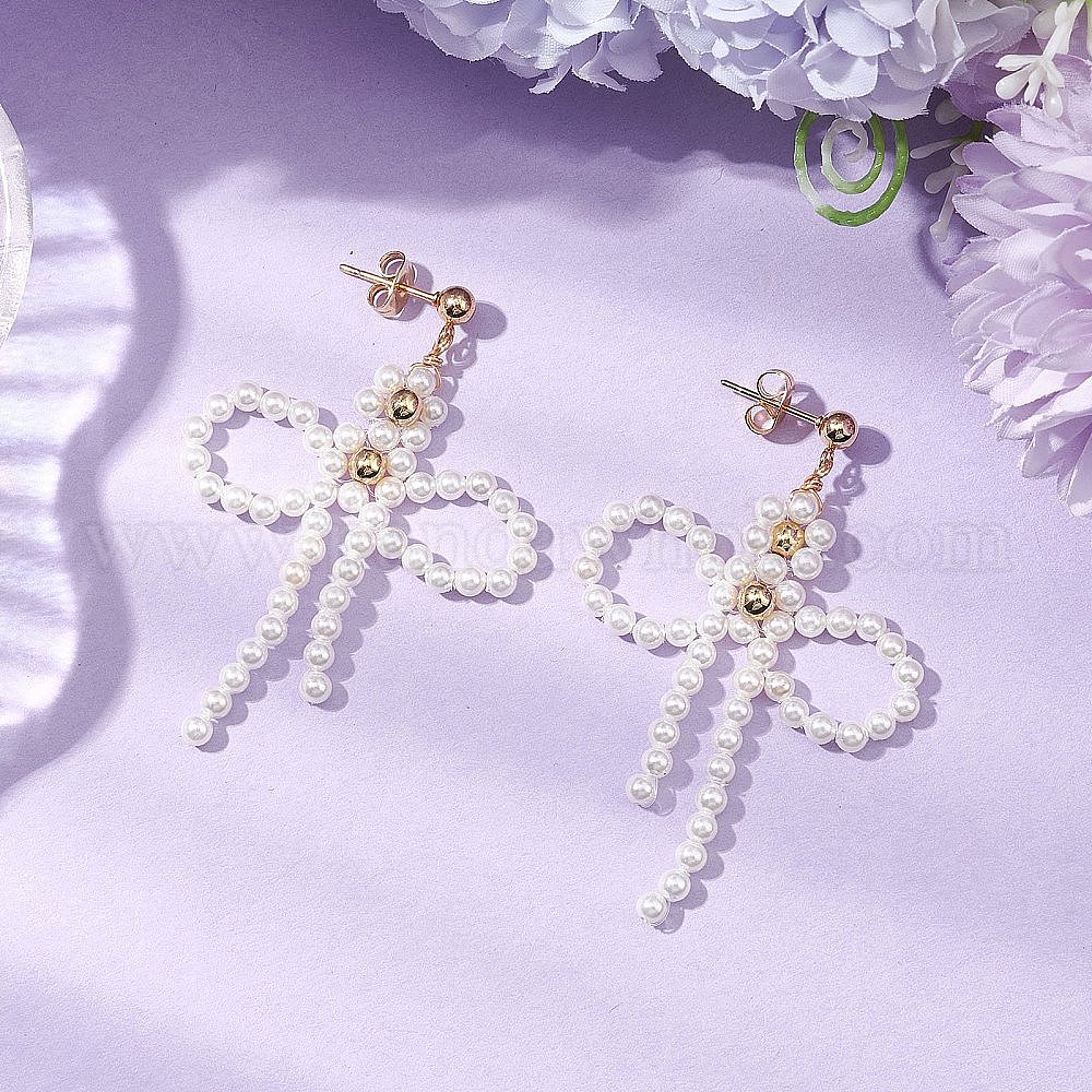 304 из нержавеющей стали болтаться серьги, с жемчугом из раковины , бантом