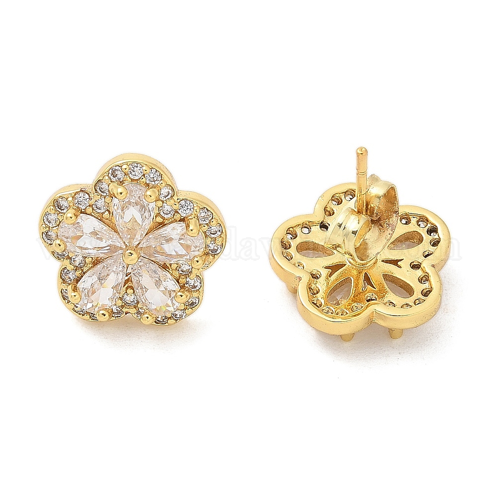 Серьги-пусеты из латуни с микропаве и прозрачным фианитом, долговечный, без свинца и без кадмия, цветок