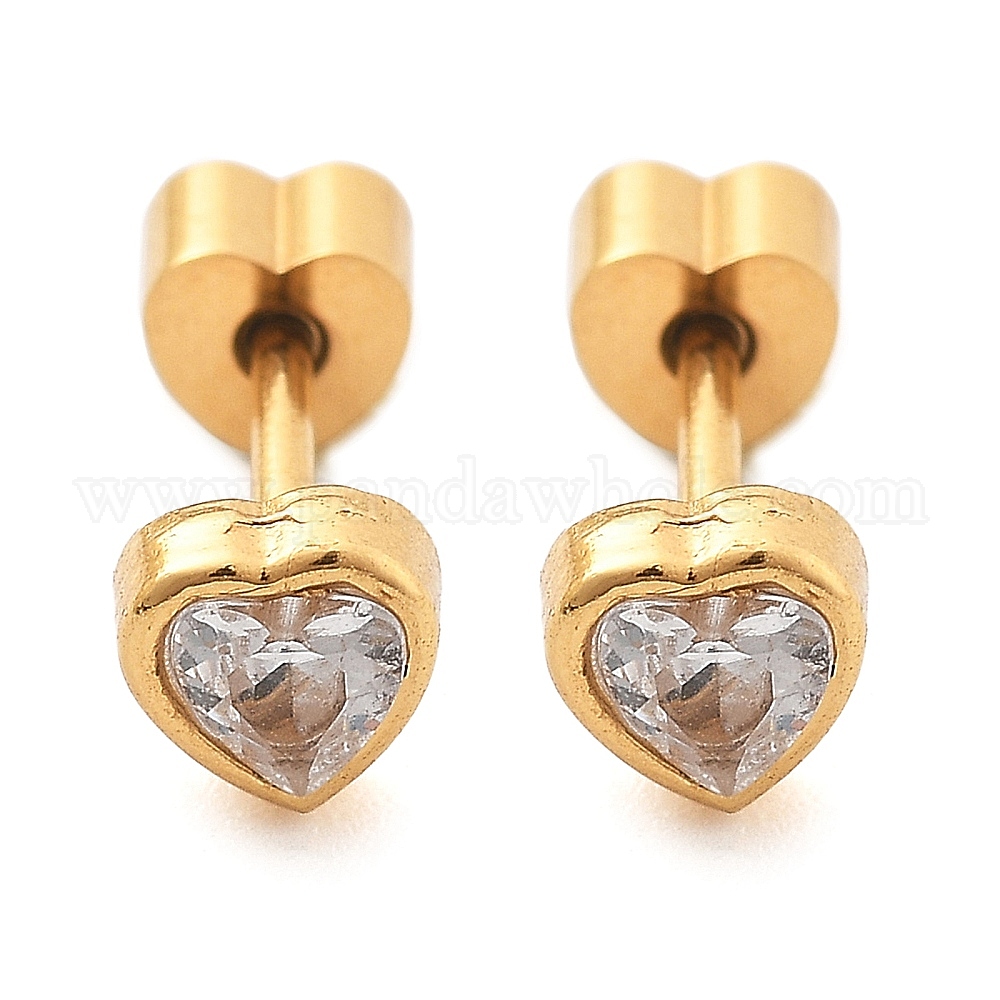 304 серьги-гвоздики из нержавеющей стали со стразами для женщин, сердце, ионное покрытие (ip)
