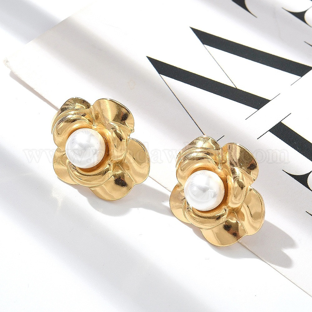 304 серьги-гвоздики из искусственного жемчуга из нержавеющей стали для женщин, цветок