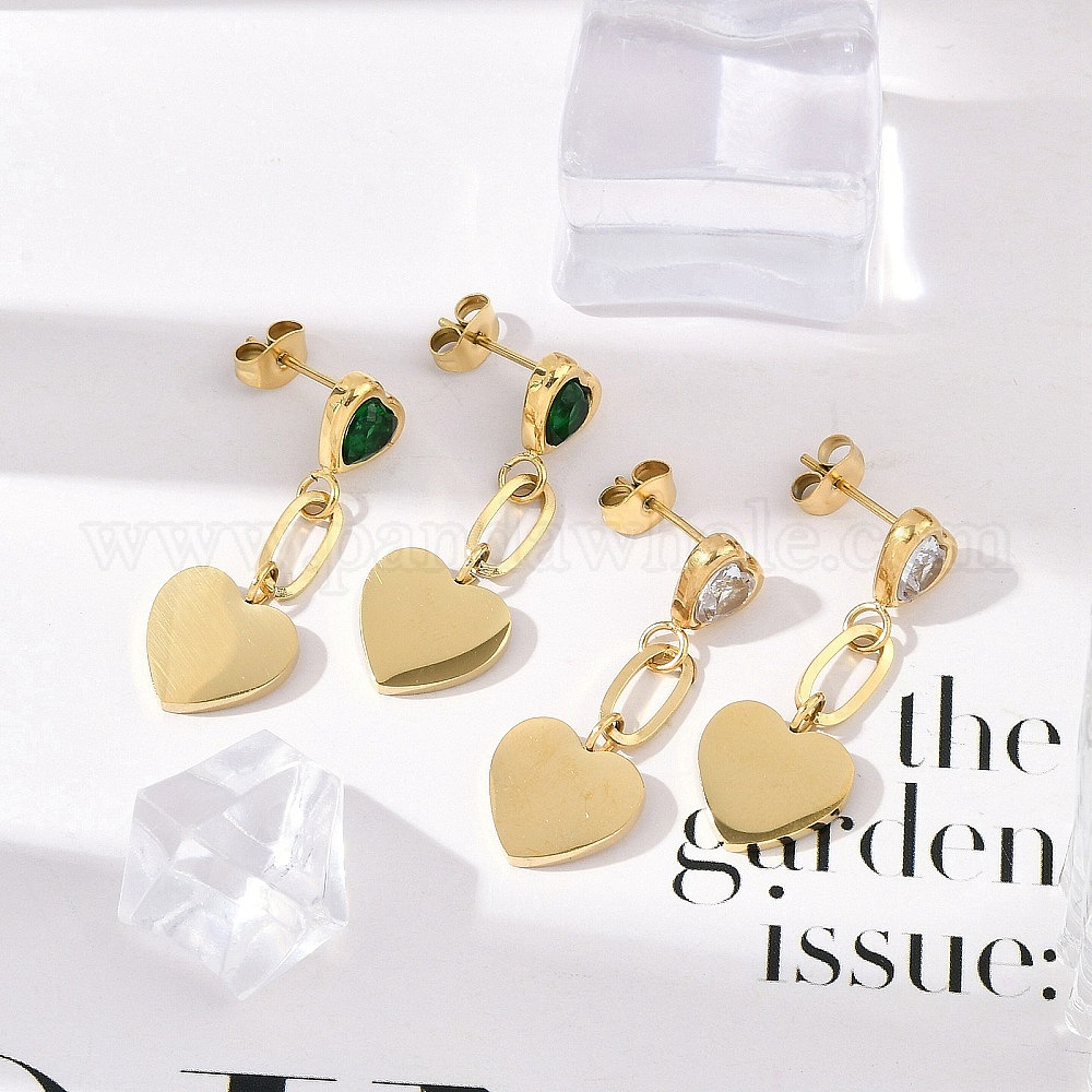 304 из нержавеющей стали кубического циркония серьги стержня, сердце, ионное покрытие (ip), золотые