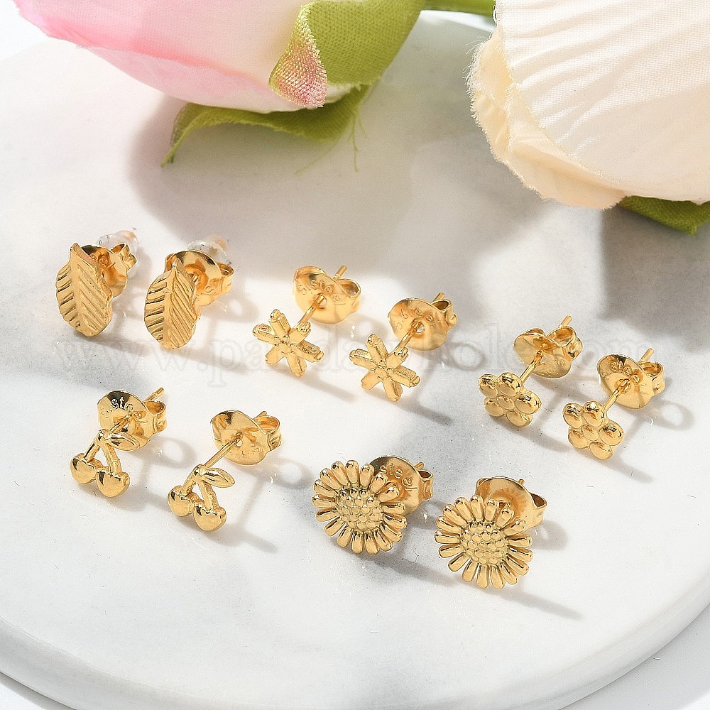 304 серьги-гвоздики из нержавеющей стали для женщин, золотые