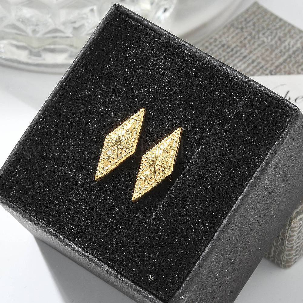 • Золотой 304 серьги-гвоздики из нержавеющей стали для женщин, ромб, золотые, 17.5x7 мм