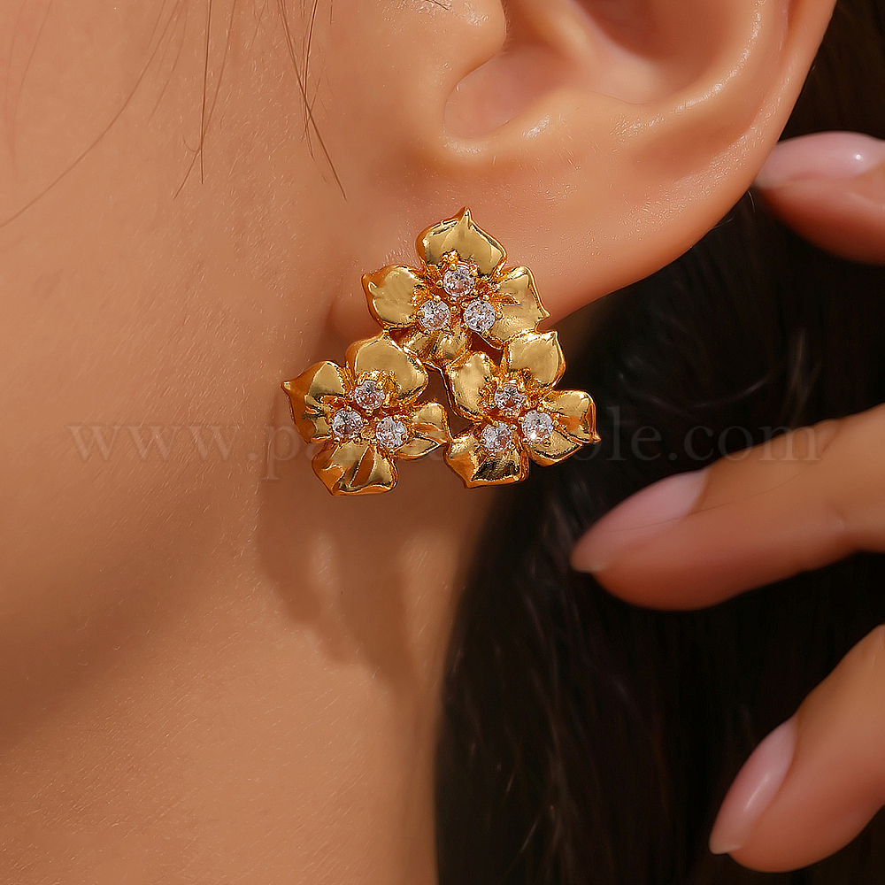 Роскошные латунные серьги-гвоздики с прозрачными кубическими цирконами в форме цветка
