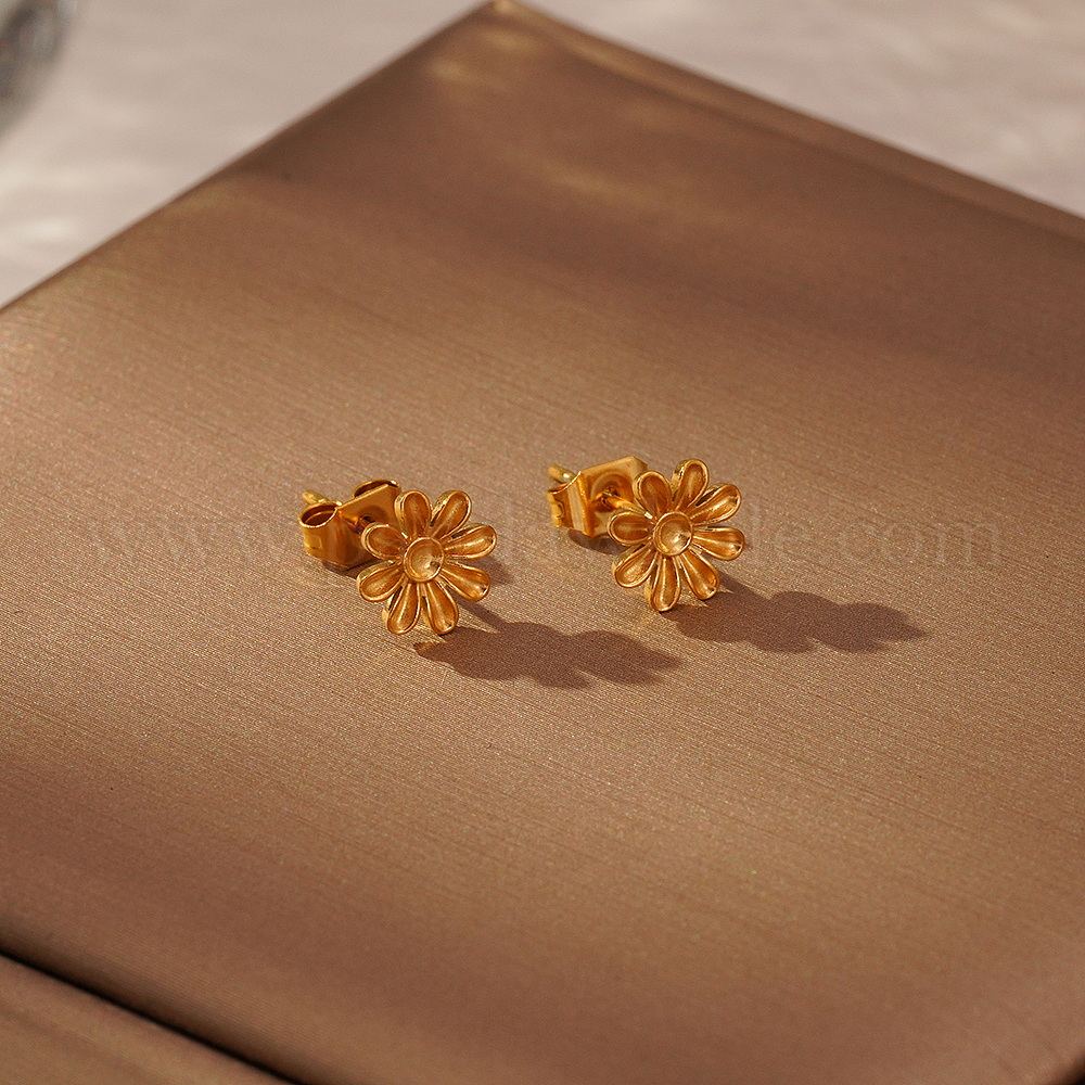 Стильные 304 серьги-гвоздики в форме цветка из нержавеющей стали для повседневной носки у женщин