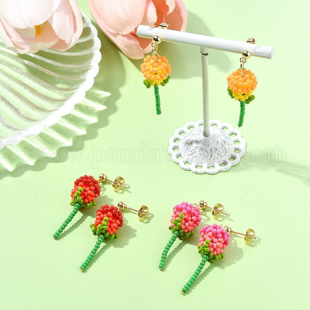 3пары 304 серьги-гвоздики из нержавеющей стали с розовым стеклом и бусинами, золотые
