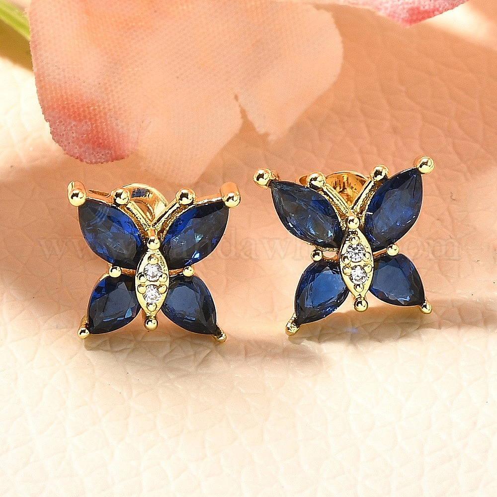 Серьги-гвоздики из латуни с микропаве и цирконием в форме бабочки, стойки покрытие, долговечный, без кадмия и без свинца