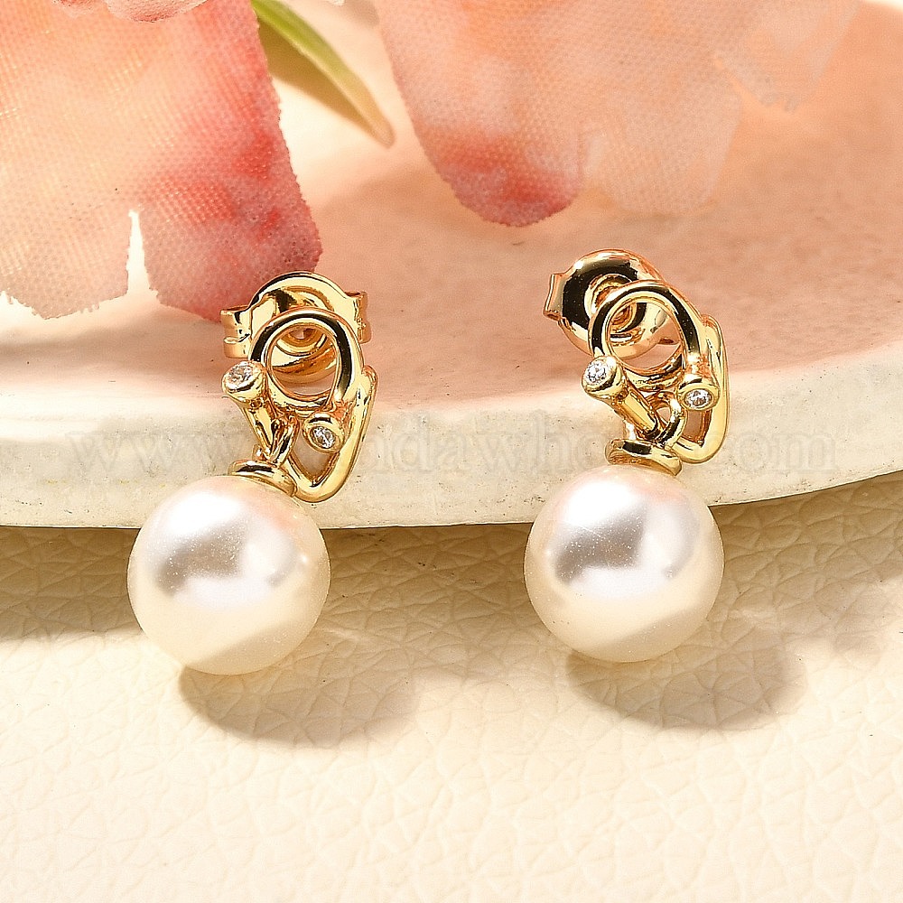 Круглые серьги-гвоздики из латуни с микропаве из кубического циркония и АБС-пластика с жемчугом, без кадмия и без свинца, стойки покрытие, долговечный