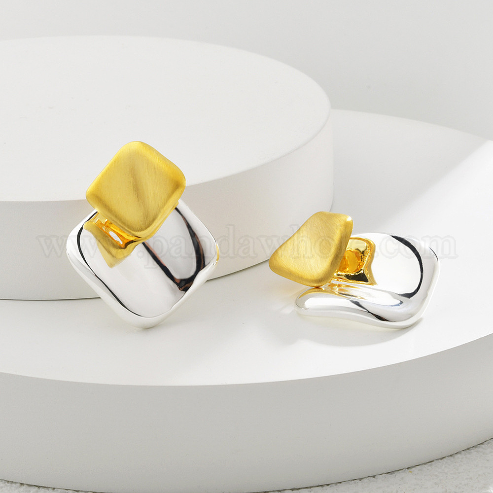 • Золотой & Серебряный Серьги-гвоздики в форме ромба из латуни для женщин, золотой и серебряный, 33.5x28 мм