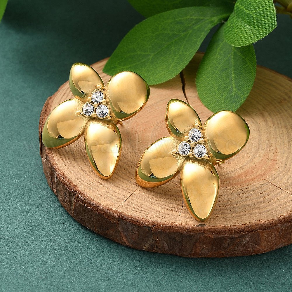304 серьги-гвоздики со стразами из нержавеющей стали, цветок (02ZHX1)