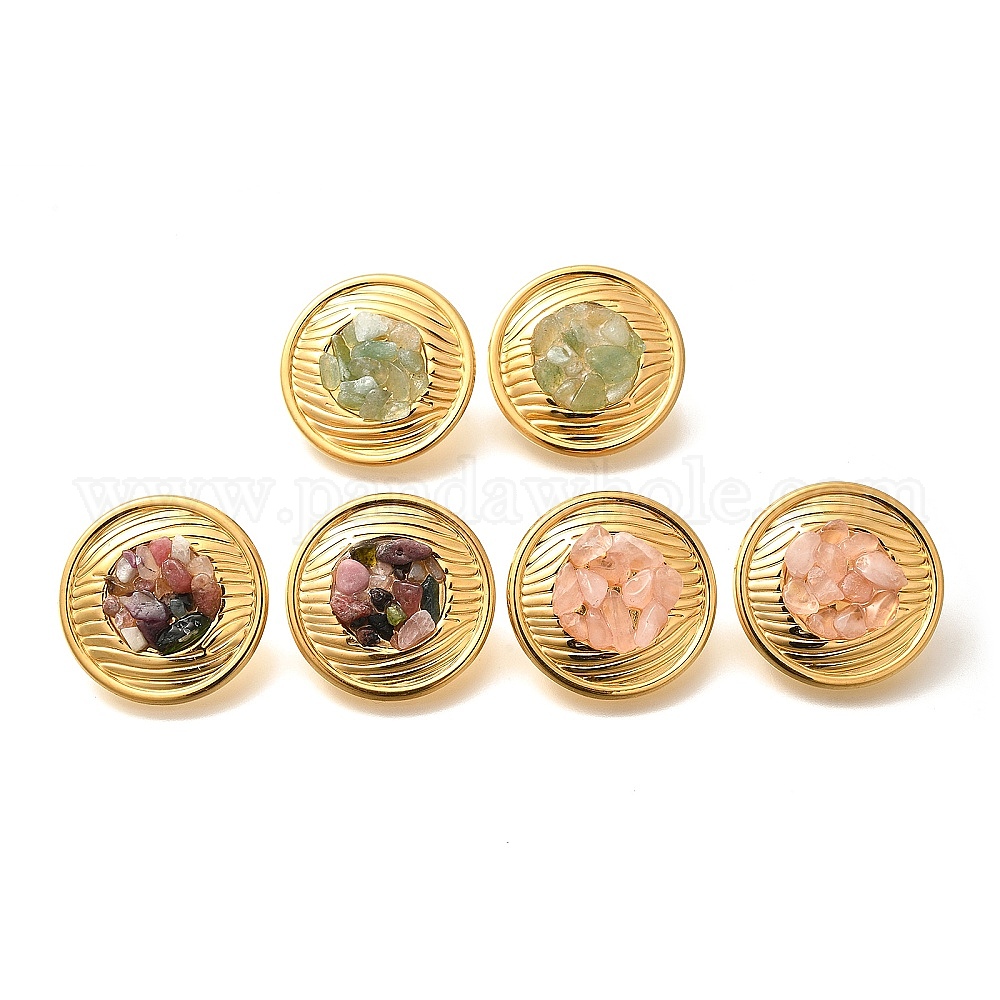 304 серьги-гвоздики из нержавеющей стали с натуральными драгоценными камнями, реальный 18 k позолоченный, плоско-круглые