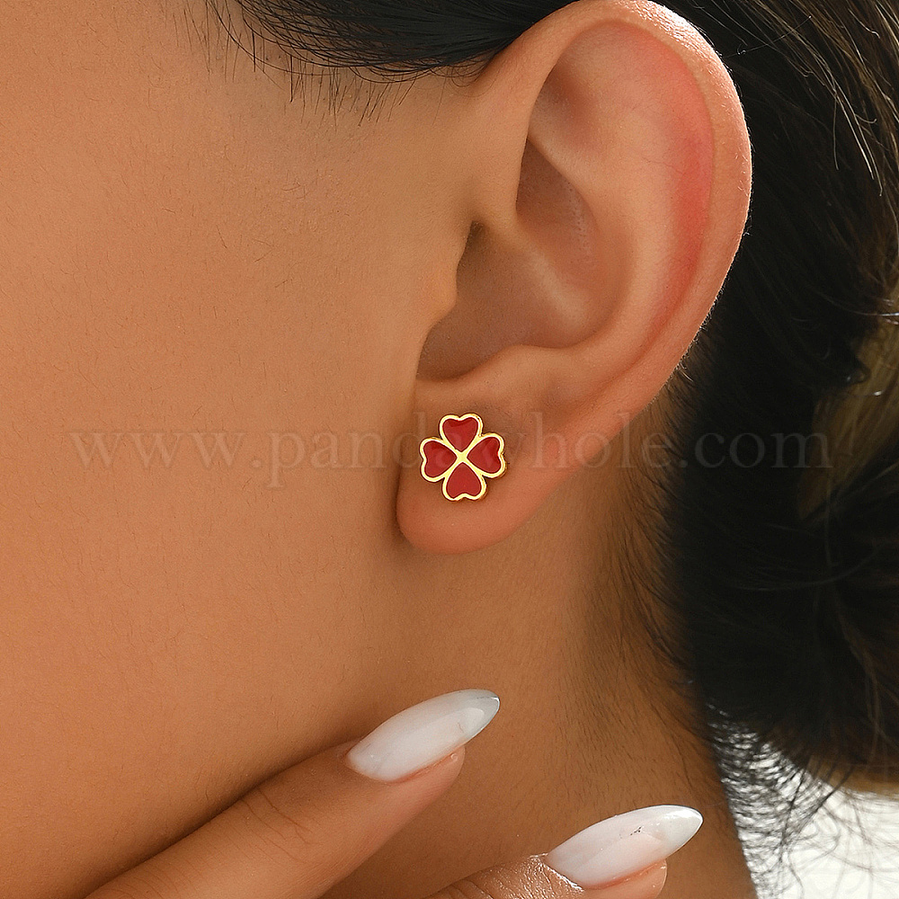 Элегантные серьги-гвоздики из сплава в форме клевера, реальный 14 k позолоченный