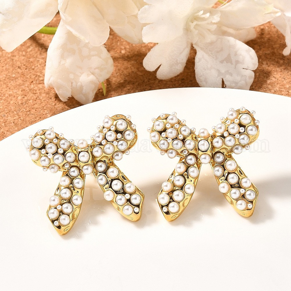 304 серьги-гвоздики из нержавеющей стали с бантом, с жемчугом из раковины