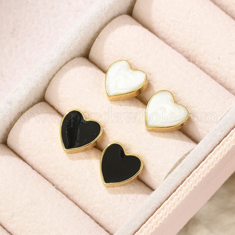304 серьги из нержавеющей стали эмаль, сердце, золотые