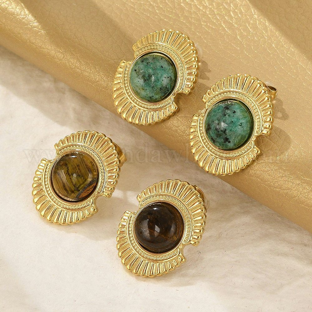 • Тигровый глаз 304 серьги-гвоздики из нержавеющей стали с натуральной африканской бирюзой (яшмой), овальные, золотые, 22x17 мм