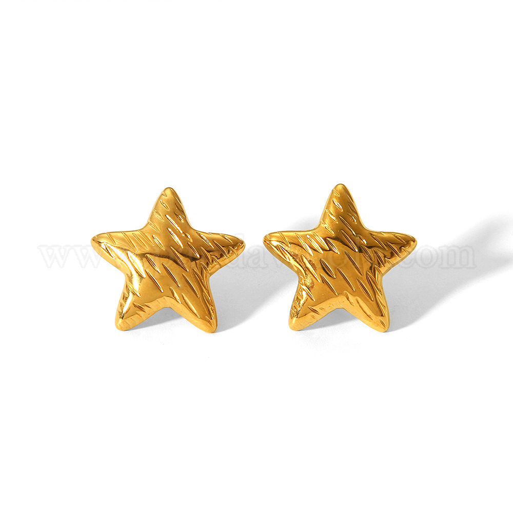 •  Модные серьги-гвоздики в форме звезды, 304 женские украшения из нержавеющей стали, золотые, 22x23 мм