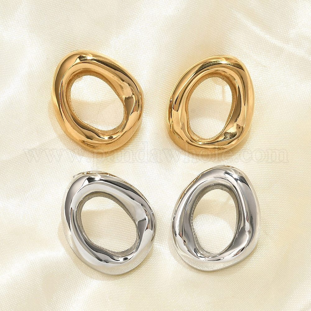 • Нержавеющая Сталь Цвет 304 овальные серьги-гвоздики из нержавеющей стали, цвет нержавеющей стали, 31x25 мм