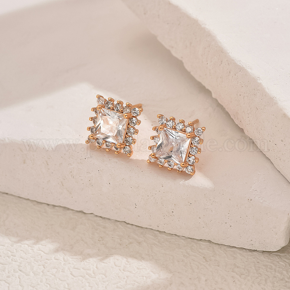 Квадратные серьги-гвоздики из латуни с микропаве из прозрачных кубических цирконий