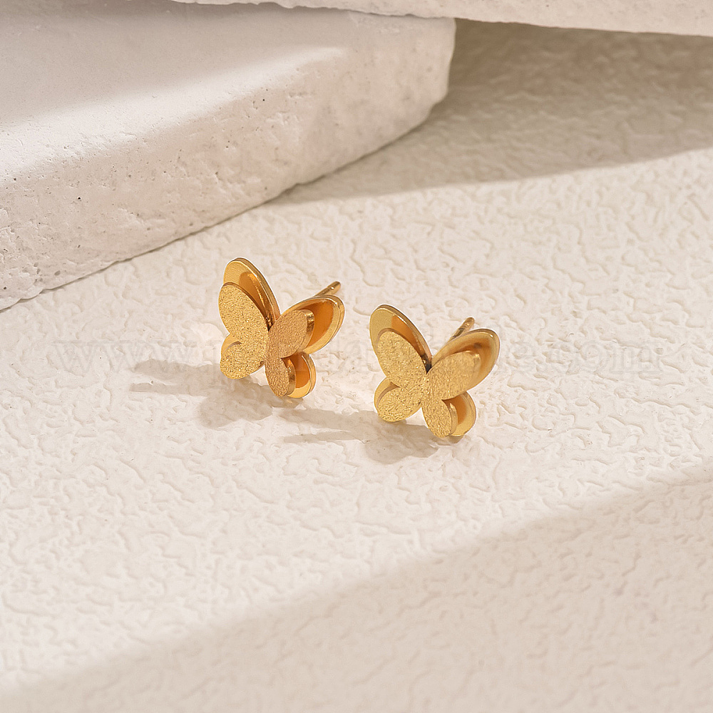 • Золотой Стильные 201 двухслойные серьги-гвоздики в форме бабочек из нержавеющей стали, золотые, 12 мм