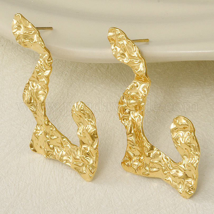 Модные 304 серьги-гвоздики из нержавеющей стали с неровной гофрированной поверхностью