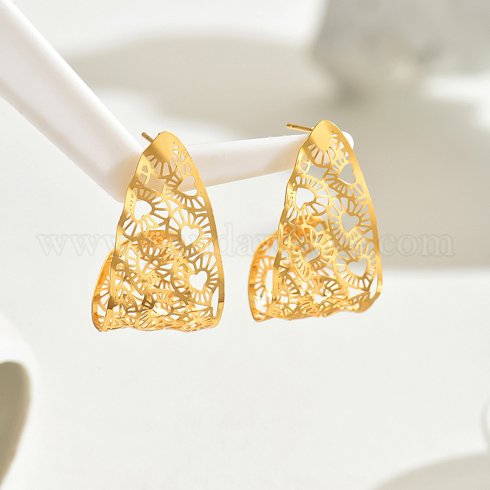 • Золотой Серьги-гвоздики в форме полого сердца из сплава, золотые, 33x20 мм