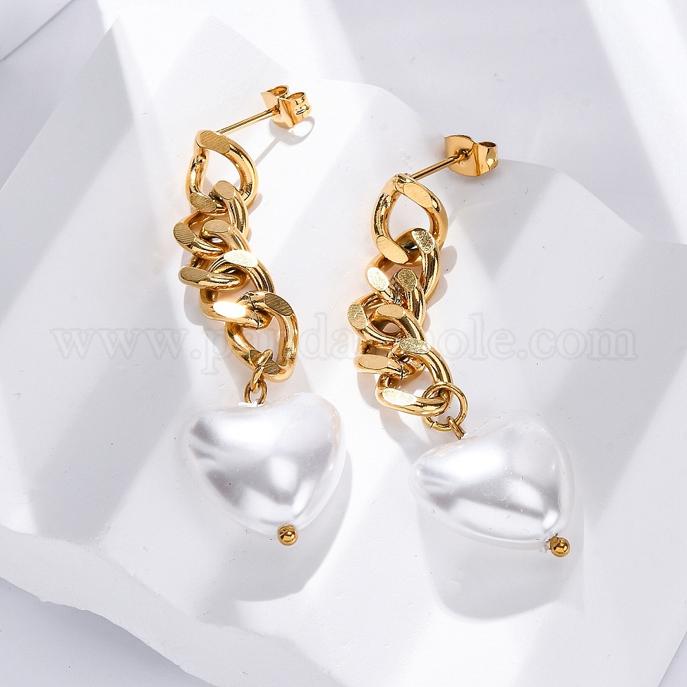 304 Серьги из нержавеющей стали, с пластиковой жемчужины, цепочка-оберег