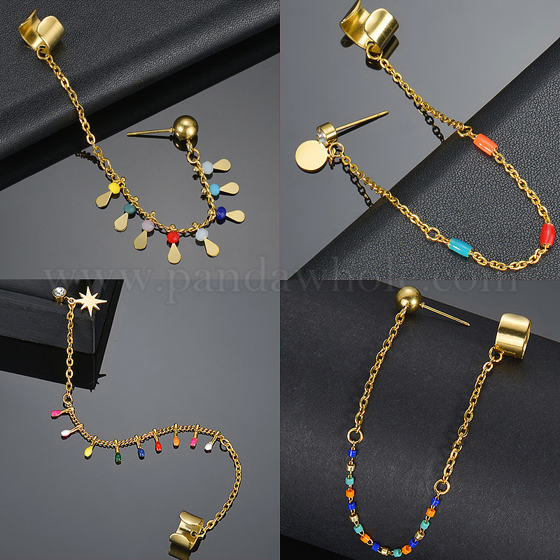 • Золотой 304 из нержавеющей стали серьги, колонна с подвеской-цепочкой, золотые, 130 мм