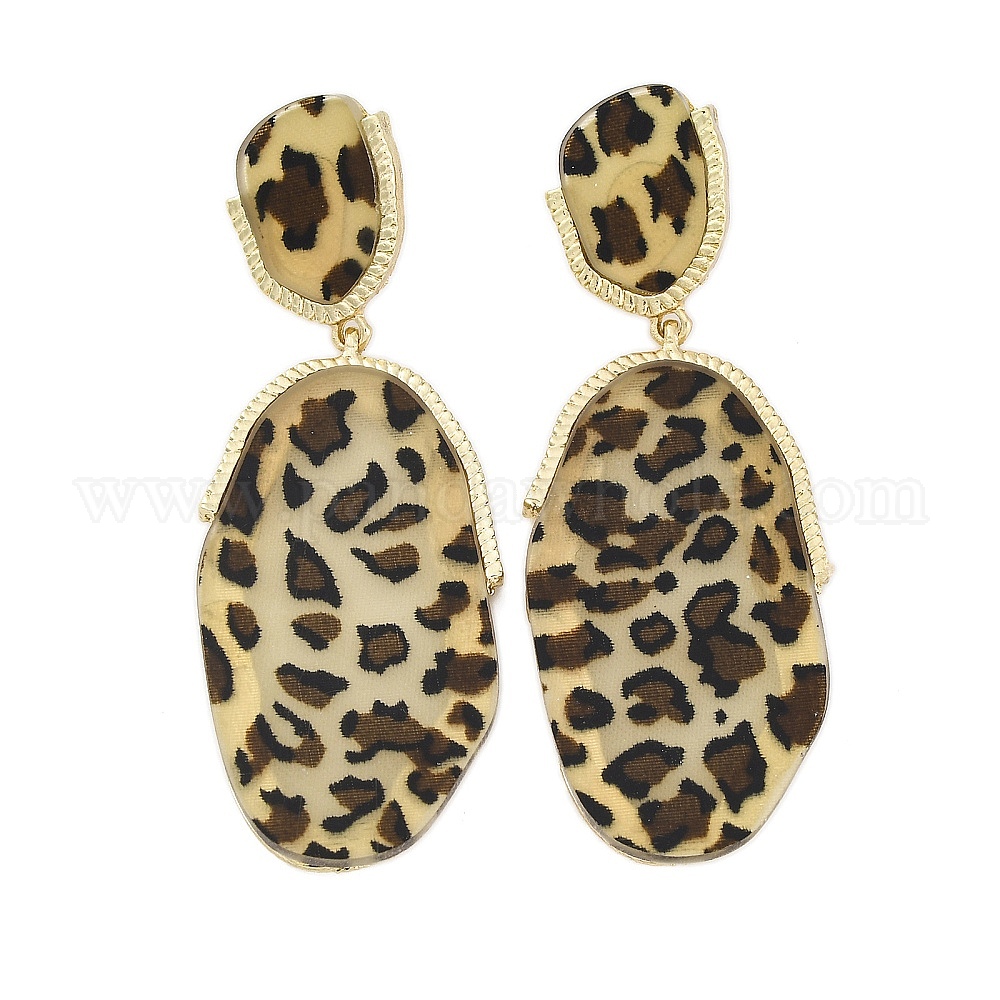 • Золотой Серьги-гвоздики из акрила и сплава, длинный леопардовый принт с каплей, золотые, 98x32 мм