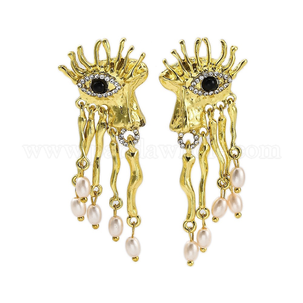 Серьги-гвоздики из сплава, смолы и искусственного жемчуга, глаза и черты лица и нос, слева и справа