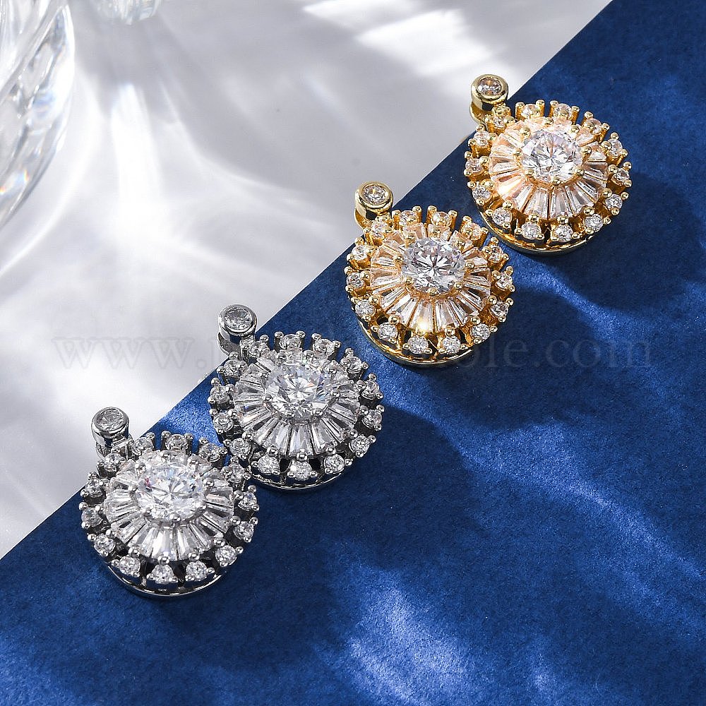 Серьги-гвоздики из латунного микро-паве, цветок
