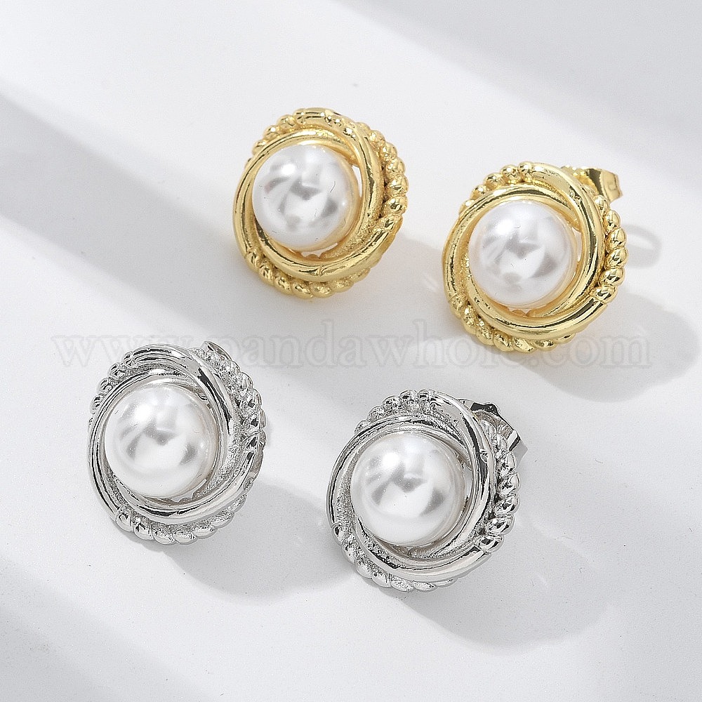 Латунь серьги, с ABS имитации жемчуга, без свинца и без кадмия, долговечный, стойки покрытие, полукруглый