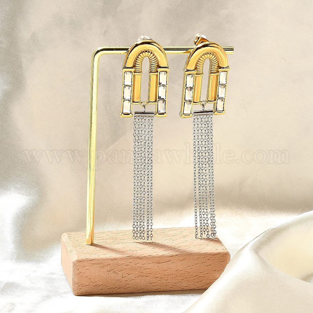 304 двухцветные серьги-гвоздики из нержавеющей стали, арка с цепью
