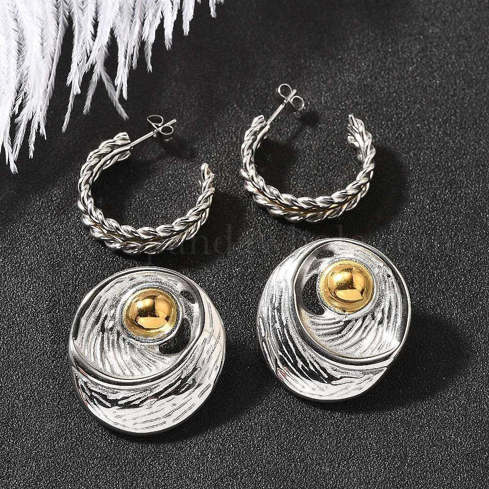 304 двухцветные серьги-гвоздики из нержавеющей стали, золотые и нержавеющая сталь цвет