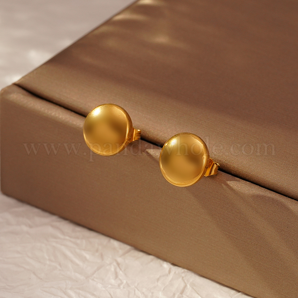 • Золотой Простые 304 геометрические плоские круглые серьги-гвоздики из нержавеющей стали, золотые, 10.48 мм