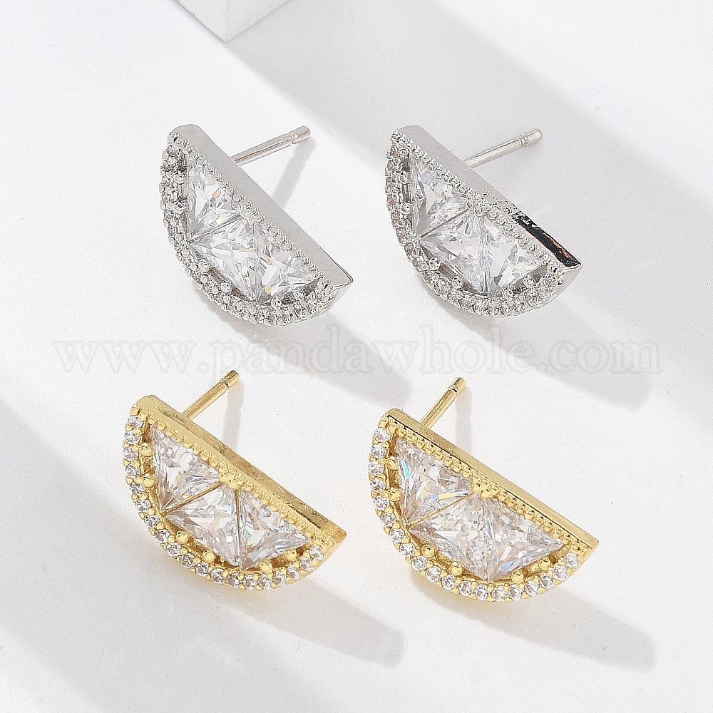 Полукруглые серьги-гвоздики из латуни с микропаве из прозрачных кубических цирконий, стойки покрытие, долговечный, без свинца и без кадмия