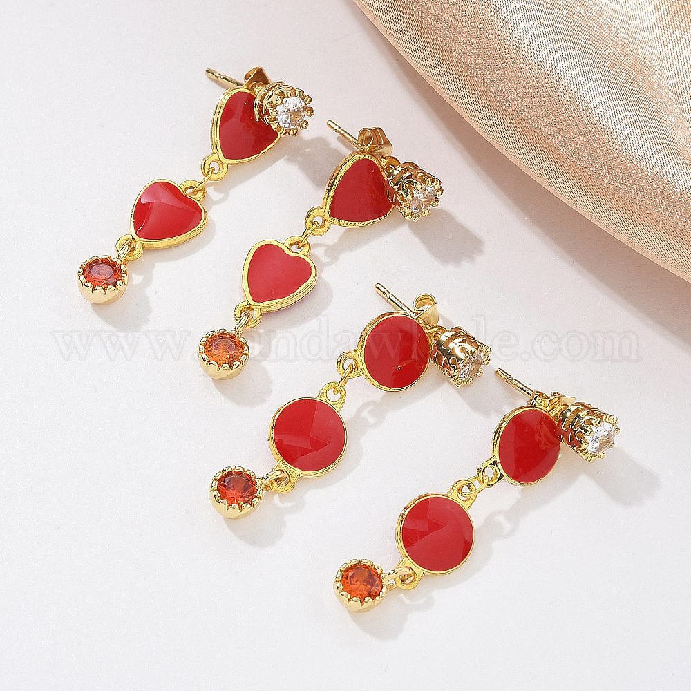 • Сердце Серьги-гвоздики с цирконом из латуни, с эмалью, стойки покрытие, долговечный, без свинца и без кадмия, реальный 18 k позолоченный, сердце, 33x6.5 мм