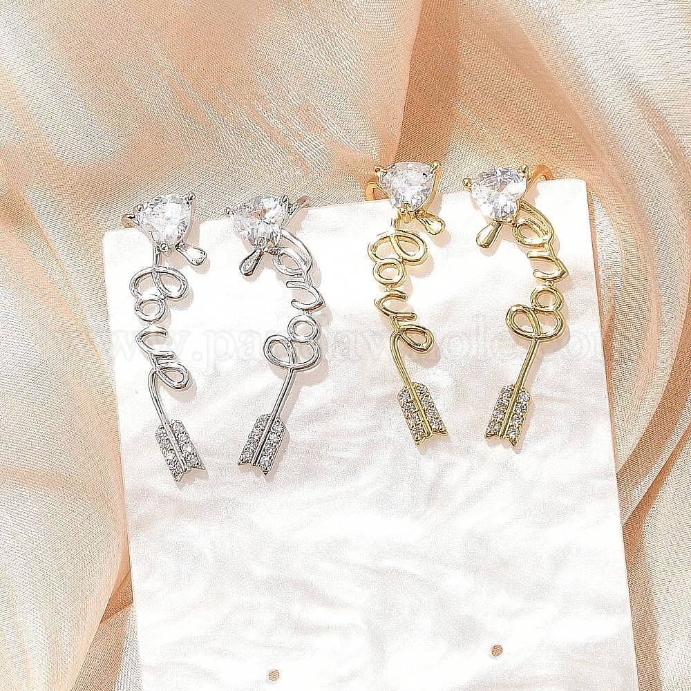 Серьги-гвоздики из латунного микро-паве, стойки покрытие, долговечный, без свинца и без кадмия, стрелка со словом